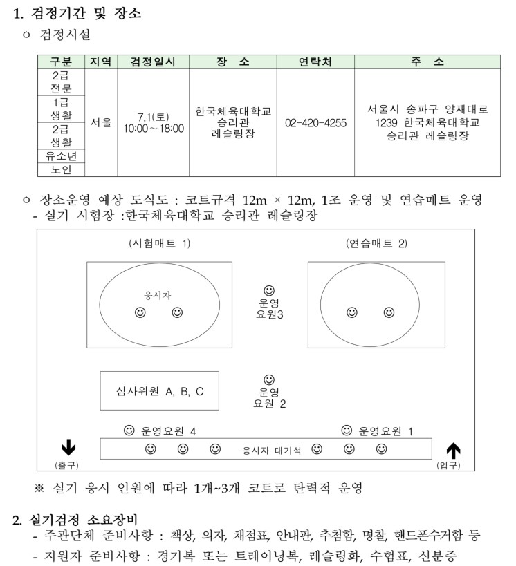 ✔ 평가 방식: 심사위원이 무작위로 기술을 선정하여 수행하도록 함.