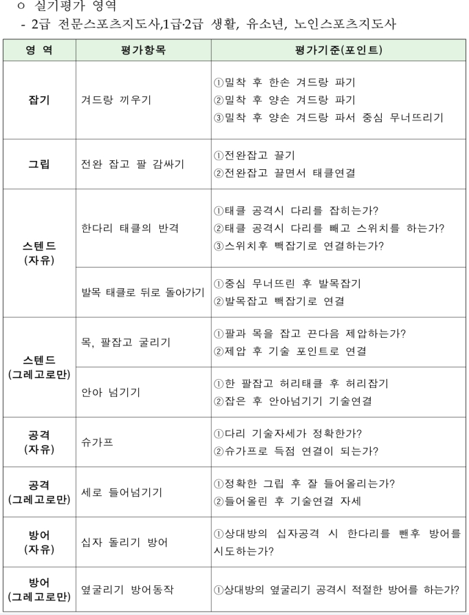 ◆ 생활스포츠지도사 2급 실기 심사 기준